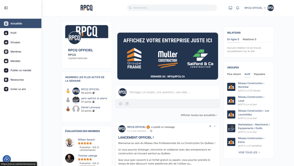 Le Réseau des Professionnels de la Construction du Québec vous offre une plateforme de mise en relation entièrement dédiée aux entrepreneurs de la construction.